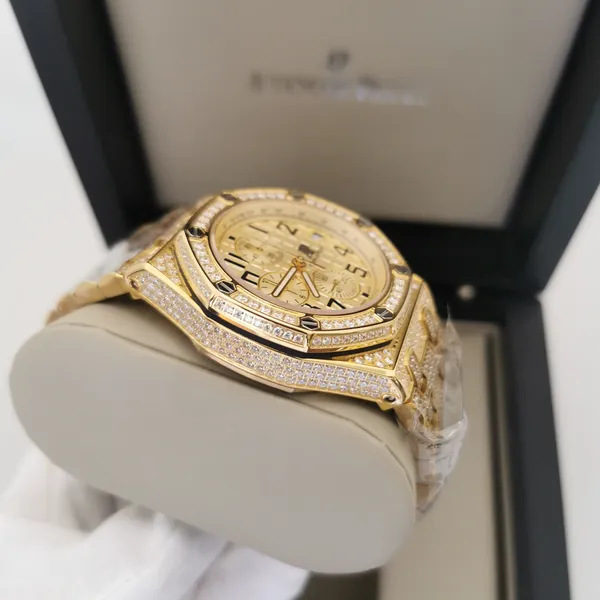 - Caixa: 42mm, com acabamento refinado e parafusos aparentes no bezel