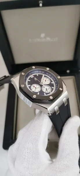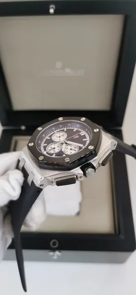 - Caixa: 44mm, com acabamento refinado e parafusos aparentes no bezel
