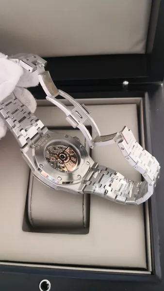 • Caixa: 41mm, com acabamento refinado e parafusos aparentes no bezel